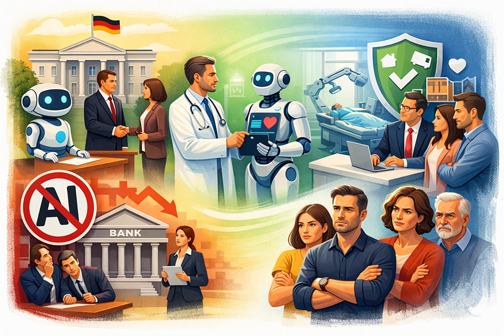 Sehr viel skeptischer zeigten sich Teilnehmer einer forsa-Umfrage noch 2024. Eine - teilweise deutliche - Mehrheit der Befragten fühlte sich damals eher unwohl, wenn KI medizinische Diagnosen stellt und Behandlungsempfehlungen gibt (61 Prozent), über staatliche Unterstützungsleistungen entscheidet (65 Prozent) oder in Bank- und Versicherungsgeschäften involviert ist (69 Prozent).